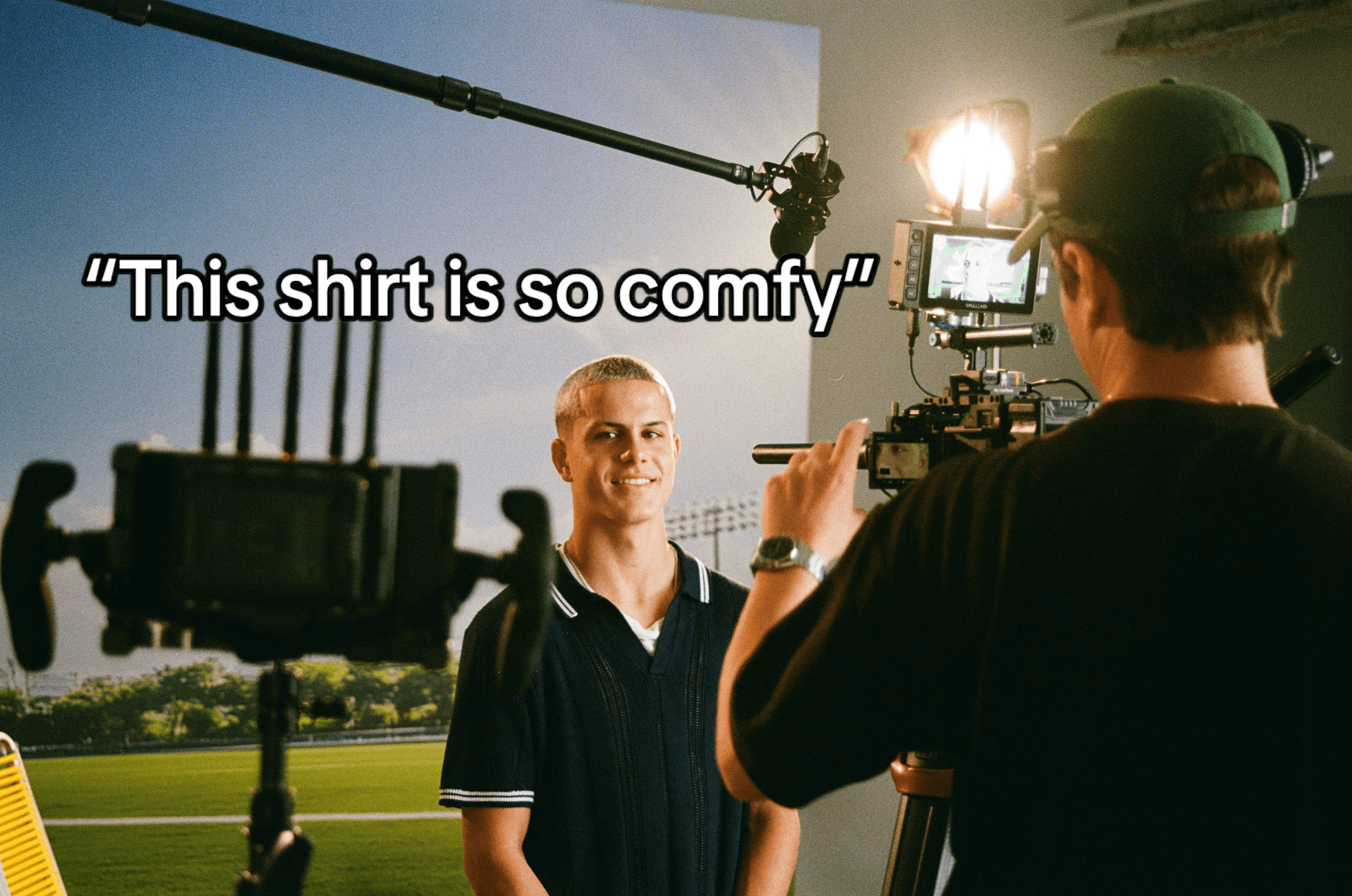 For this Aero project, we spent the day building small scenes around Cavan that felt fun and true to him — lounging on astroturf, shooting film photos, kicking a ball around, even grilling for a “let me cook” moment. Cavan’s a rising pro soccer player, the youngest to ever sign in MLS, so we wanted the shoot to feel as loose and energetic as he naturally is. The idea was simple: capture his personality, keep it light, and show how the clothes move in real, laid-back moments.